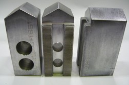 KT8300P - 3" Steel pointed jaws for a Kitagawa B208, or BB08 8" chuck. 1.5 mm x 60 degree serrations. 4 sets new-in box available @ $48.00 each set of 3. We also have these in a 3" Steel Flat tipped version |